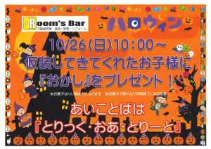 【10/26開催】Room’s Bar ハロウィンイベント開催!仮装でおかしをもらおう♪