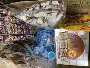 うまい棒、チーズスナック、ゼリー、10円チョコなどなど…