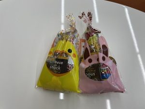かわいい動物柄のハロウィン袋に、ひとつずつ心をこめて詰めました💛💗