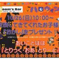 🎃【お知らせ】明日はハロウィンお菓子プレゼント!@Room’s Bar八王子🎃