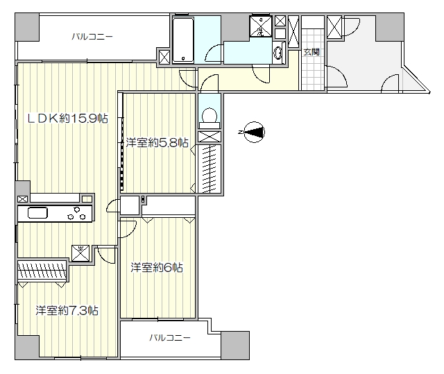 専有面積 | 79.11m2 ( 23.93坪 ) | 間取 | 3LDK | |||||||||||||||