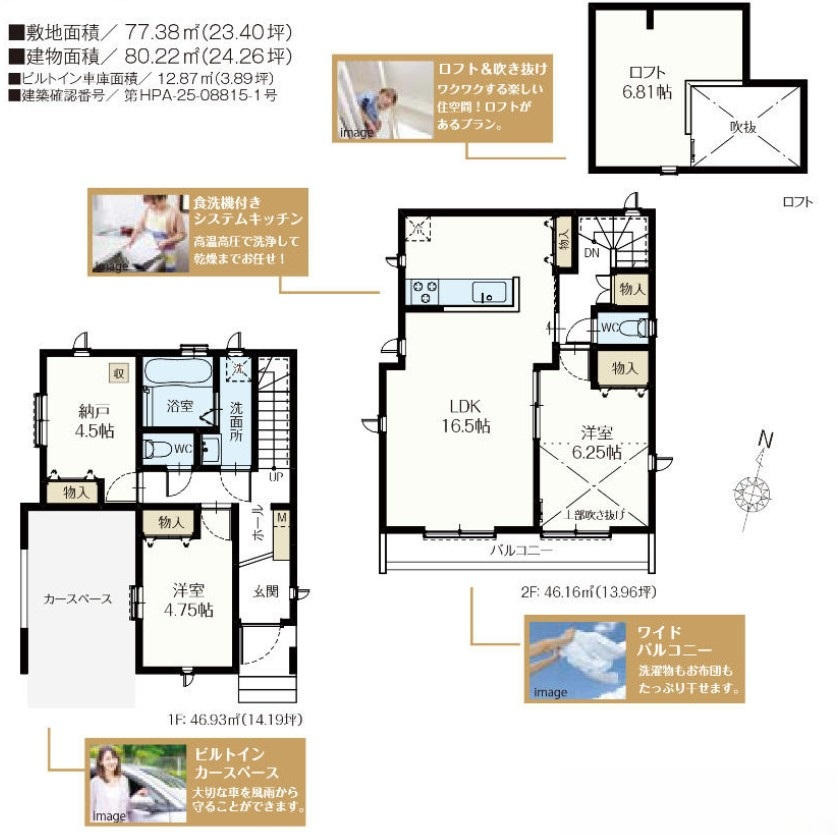 住宅性能表示制度対応住宅、設計性能評価書、建設性能評価書、外壁サイディング貼り、I.D.S型工法のスケルトンインフィル住宅、耐震住宅(耐震等級3取得)、フラット35S対応、システムキッチン、食器洗浄乾燥機、床下収納、独立洗面台、室内洗濯機置場、パントリー、LDK15帖以上、フローリング、クローゼット、ロフト、シューズボックス、廊下収納、バルコニー、駐車場、南道路、公営水道、公共本下水、都市ガス、司法書士売主指定、土地家屋調査士売主指定 |