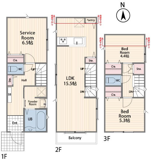 (1F)S6.5、(2F)LDK15.5、(3F)洋4.4、(3F)洋5.3 |