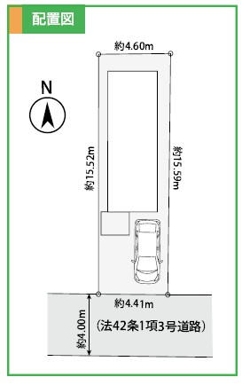 ★前面道路幅員が4.1mになるので車種によっては駐車しづらい場合がありますので現地でご確認ください