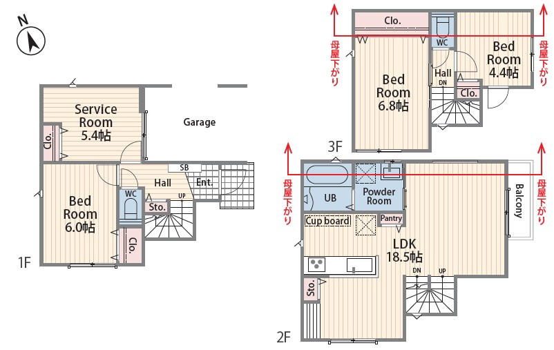 (1F)S5.4、(1F)洋6、(2F)LDK18.5、(3F)洋4.4、(3F)洋6 |