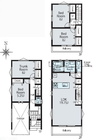 (1F)洋5.25、(1F)S6、(2F)LDK19.75、(3F)洋6、(3F)洋6 |